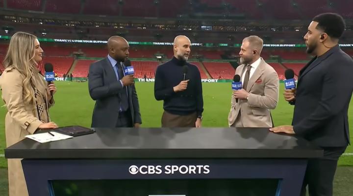 北京时间3月23日,曼城在温布利2-0击败阿森纳成为联赛杯冠军。赛后,曼城主帅瓜迪奥拉接受了CBS体育的采访。