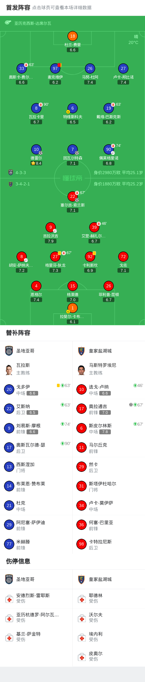 圣地亚哥2-2皇家盐湖城,塞尔吉-索兰斯打破僵局,奥拉通吉扳平