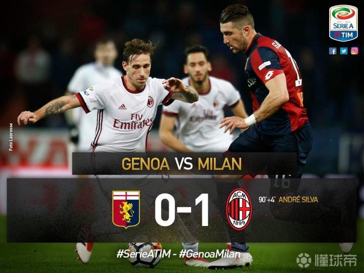 从比赛的结局看,第68分钟安德烈-席尔瓦换下恰球王是比赛的转折,热那亚在下半场开局三板斧后全线退防,米兰几乎获得全部球权,但面对铜墙铁壁的攻坚能力依然没有改善。直到第93分50秒,米兰最后一攻,苏索右路起球,禁区内A席甩头攻门,佩林奋身扑救依然无济于事,读秒绝杀!
