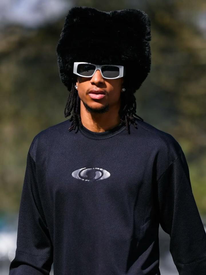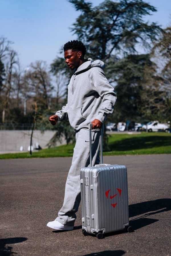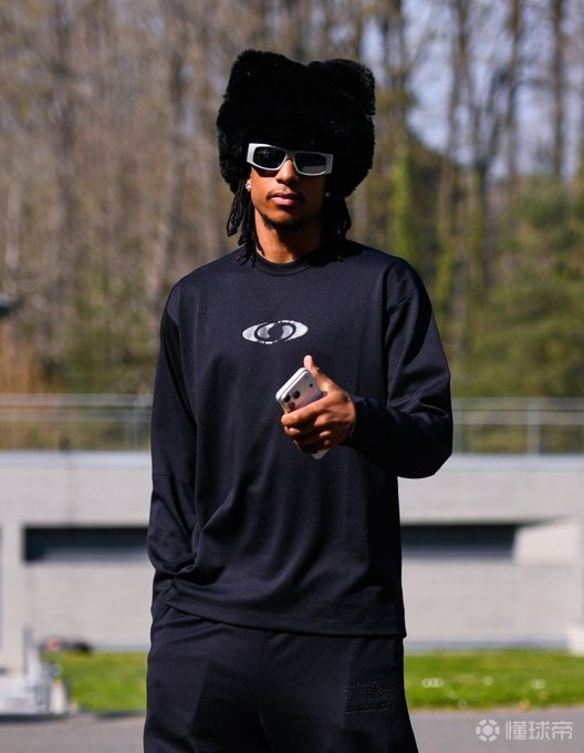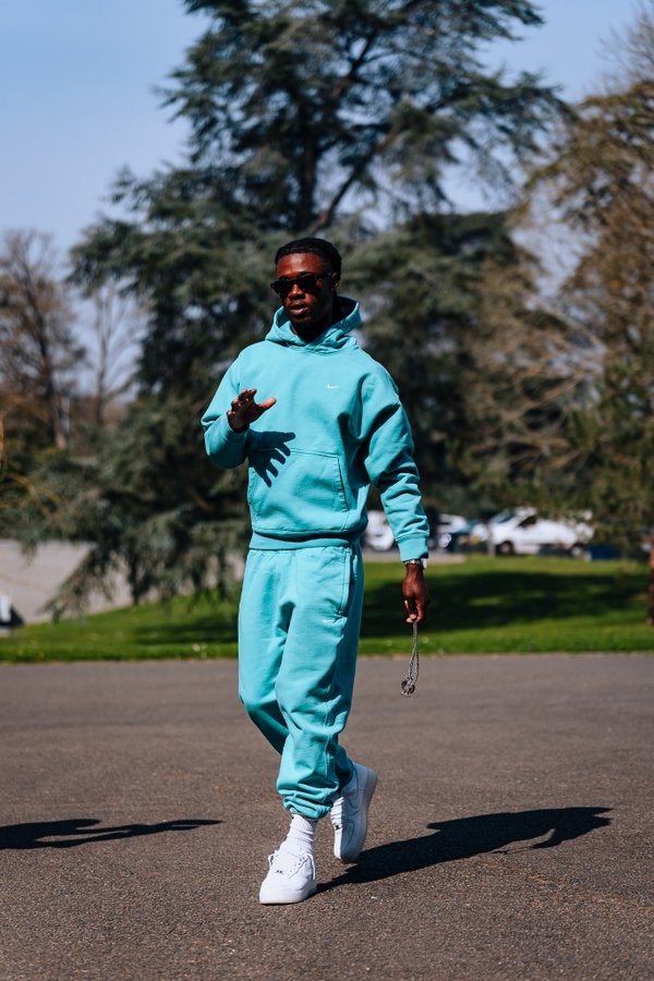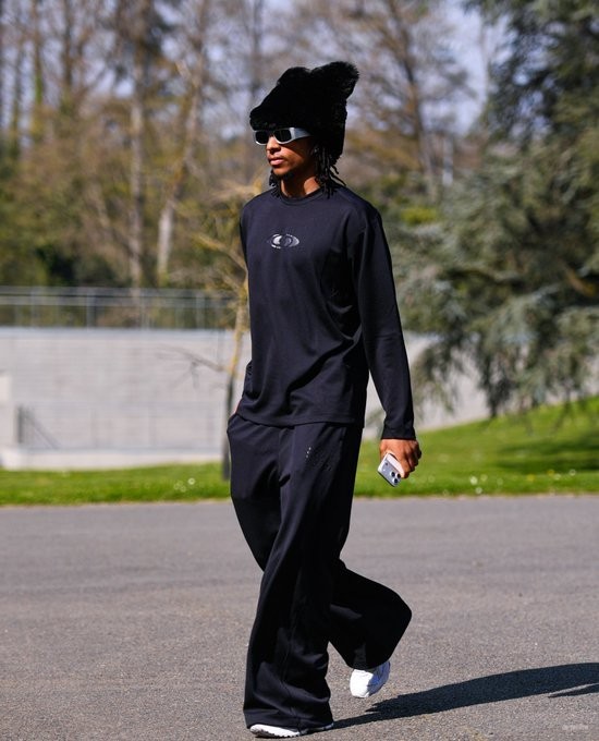 奥利塞佩戴了一顶黑色毛皮帽,搭配银白色的太阳镜,身穿黑色复古毛衣和黑色喇叭裤,简约不失时尚。埃基蒂克的造型极具先锋感,身着一件宽松的白色高领针织衫,搭配了一条带有金属链条装饰的黑白阔腿皮裤。卡马文加一套薄荷绿连帽卫衣套装也十分亮眼。