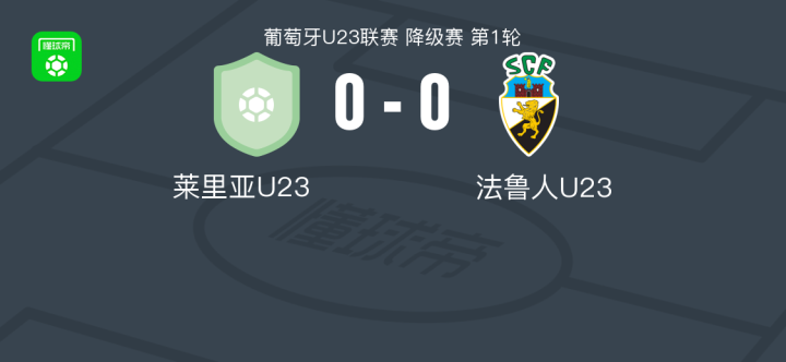 莱里亚U23 0-0法鲁人U23,双方握手言和战报bot @懂球帝03-25 00:53北京时间3月24日葡萄牙U23联赛 降级赛 第1轮,莱里亚U23主场对阵法鲁人U23。最终比分莱里亚U23 0-0 法鲁人U23。点击查看本场比赛详细数据>> 技术统计 展开更多