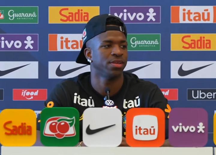 3月25日,维尼修斯出席了巴西队对阵法国队友谊赛前的新闻发布会,其中,他谈到了自己对接下来比赛的期待、自己的状态以及巴西队在世界杯上的目标等。