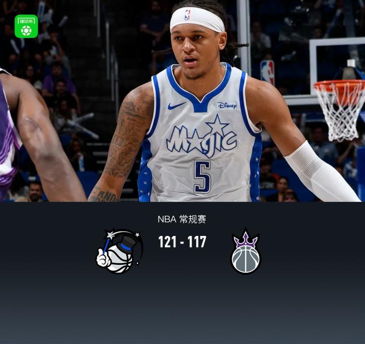 北京时间3月27日NBA 常规赛,奥兰多魔术对阵萨克拉门托国王。首节魔术取得9分领先,半场魔术65-59国王,三节结束国王追至3分分差,末节魔术一度领先12分,随后国王普劳登连续三分迫近至1分,关键时刻萨格斯三分稳住局面,最终魔术121-117国王。