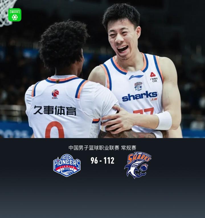 第四节天津林庭谦拿下15分,上海怀特塞德拿下7分,最终天津96-112不敌上海