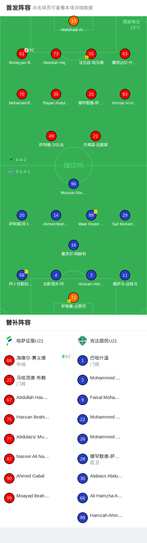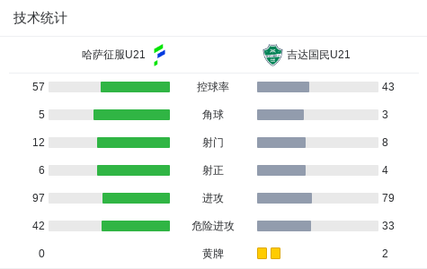 哈萨征服U21 0-0吉达国民U21,双方握手言和战报bot @懂球帝03-28 01:32北京时间3月27日沙特后备,哈萨征服U21对阵吉达国民U21。最终比分哈萨征服U21 0-0 吉达国民U21。点击查看本场比赛详细数据>> 球队阵容 技术统计 展开更多
