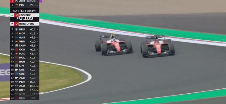 安东内利重演拉塞尔的超越,勒克莱尔反击成功。