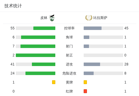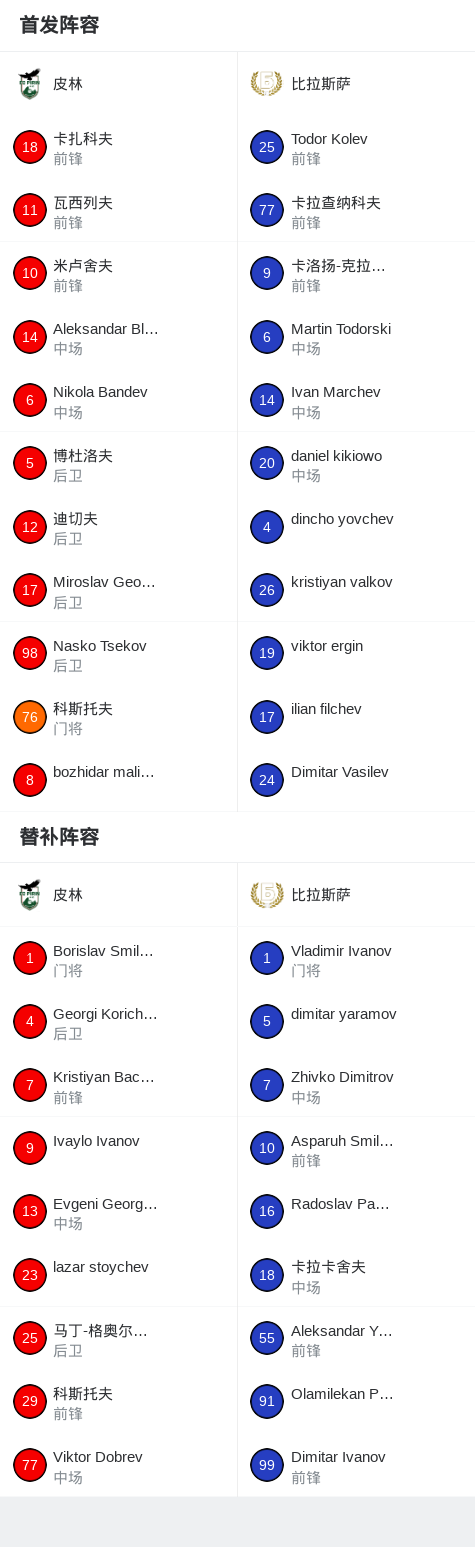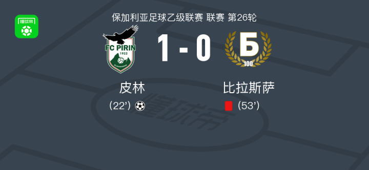 皮林1-0比拉斯萨战报bot @懂球帝03-30 01:20北京时间3月29日保加利亚足球乙级联赛 联赛 第26轮,皮林主场对阵比拉斯萨。最终比分皮林 1-0 比拉斯萨。点击查看本场比赛详细数据>>精彩瞬间第22分钟,皮林球员打入一球。第53分钟,比拉斯萨球队吃到红牌。 球队阵容 技术统计 展开更多
