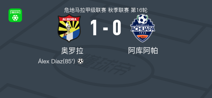 奥罗拉1-0阿库阿帕,Álex Díaz绝杀战报bot @懂球帝03-30 03:01北京时间3月30日危地马拉甲级联赛 秋季联赛 第16轮,奥罗拉主场对阵阿库阿帕。奥罗拉Álex Díaz破门。最终比分奥罗拉 1-0 阿库阿帕。点击查看本场比赛详细数据>>点击查看危地甲完整积分榜>>精彩瞬间第85分钟,奥罗拉球员Álex Díaz打入一球。 球队阵容 技术统计 展开更多