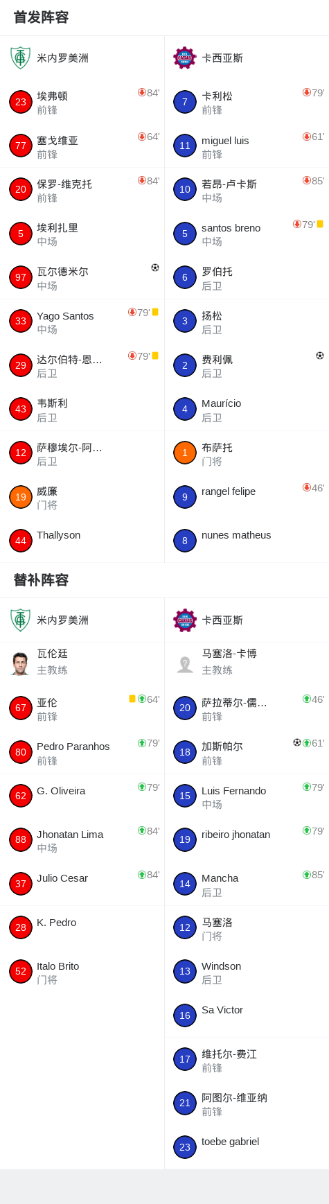 卡西亚斯2-1逆转米内罗美洲,费利佩、加斯帕尔破门