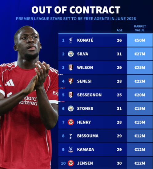 对于那些将在六月成为自由球员的球星来说,现在绝对是决定命运的关键时刻——尤其是对利物浦和曼城而言——目前排名前十的最贵自由球员,其总身价合计高达2.1亿欧元。