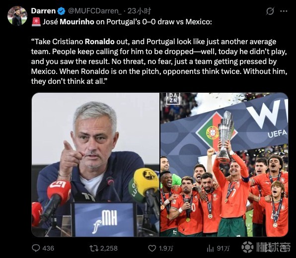 谨慎看待!穆帅谈C罗之于葡萄牙新闻最早出自球迷号,或为捏造