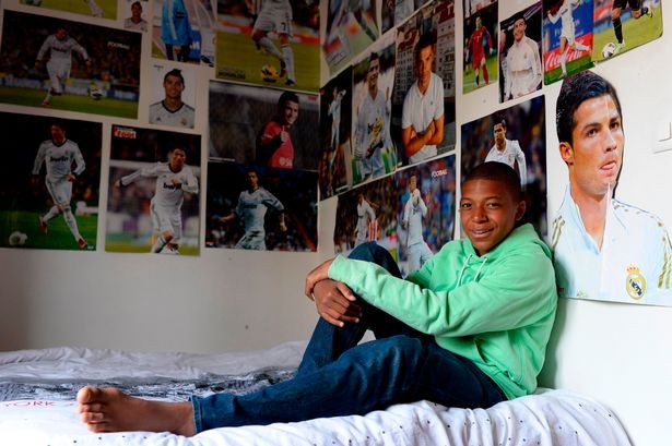 ▲少年姆巴佩的房间贴满了C罗和皇马的海报。