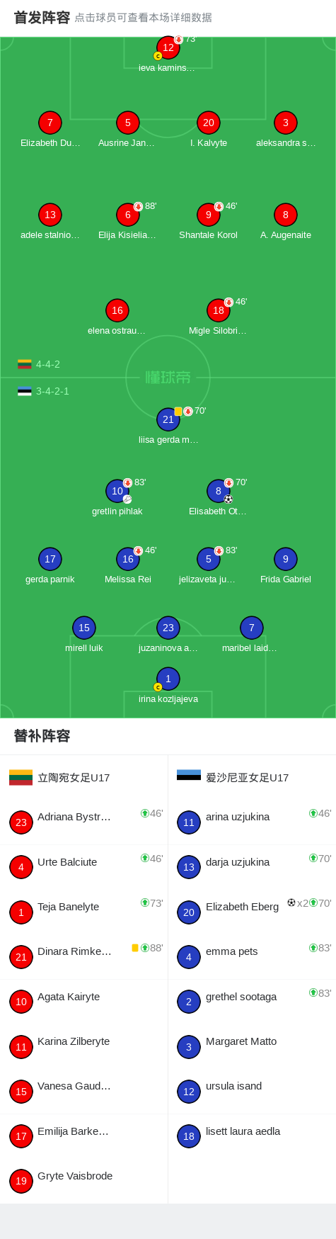第21分钟,爱沙尼亚女足U17球员gretlin pihlak助攻Elisabeth Ottas打入一球。