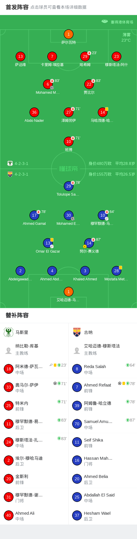 第23分钟,马斯里球员Mohamed Makhlouf打入一球。