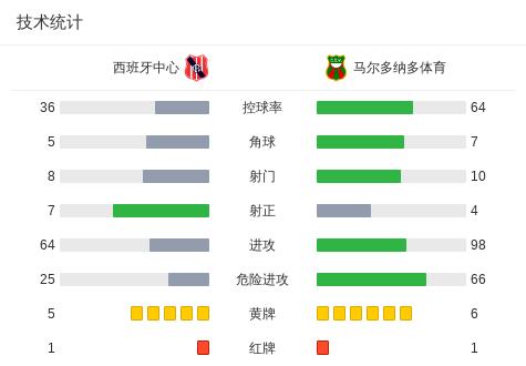 西班牙中心2-1马尔多纳多体育,Raúl Tarragona点射、伊格纳西奥-罗德里格斯破门