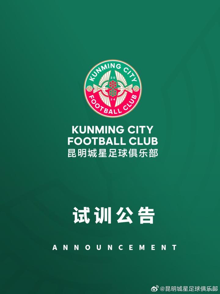 昆明城星发布试训公告:招募U20球员,将参加中青赛U20组