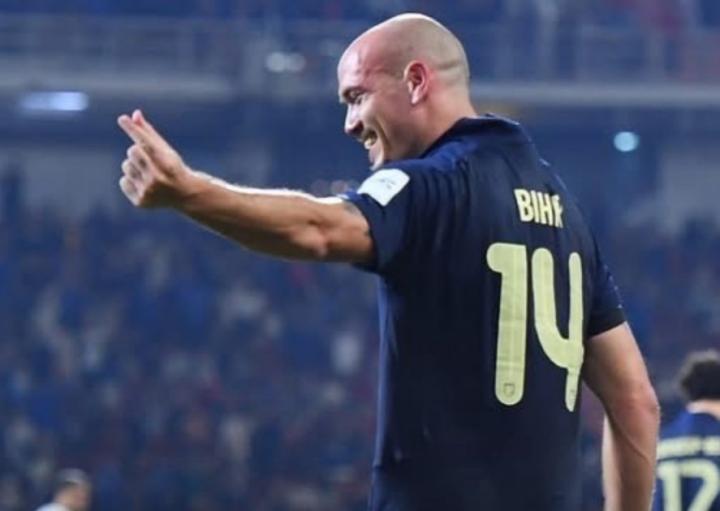 泰国队同积8分但因与国足相互战绩劣势位列C组第三,但在亚洲杯预选赛小组赛末轮中凭借第89分钟比尔的头球绝杀,以2-1击败土库曼斯坦,积15分位列D组第一成功晋级。