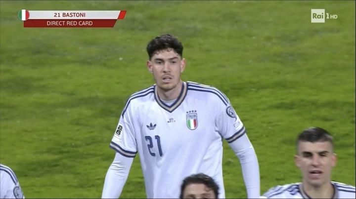 此役对阵波黑队,在意大利队取得1-0领先的情况下,巴斯托尼在比赛第42分钟因铲倒梅米奇而被主裁判蒂尔潘出示直接红牌罚下,导致意大利队少一人作战。