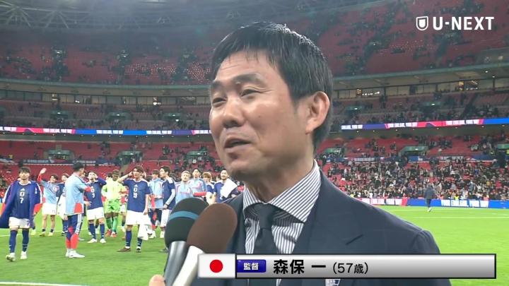 现在在我面前的是日本国家队的森保一主教练,日本队刚刚在著名的温布利球场成功击败了实力强劲的英格兰代表队……