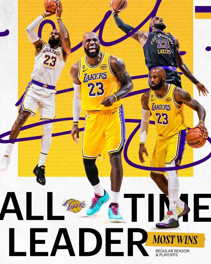 赛后根据统计,本场比赛是现年41岁的詹姆斯NBA生涯至今拿到的第1229胜(包含季后赛),他也就此超越了湖人传奇贾巴尔,独占NBA历史球员取胜场次第一位。