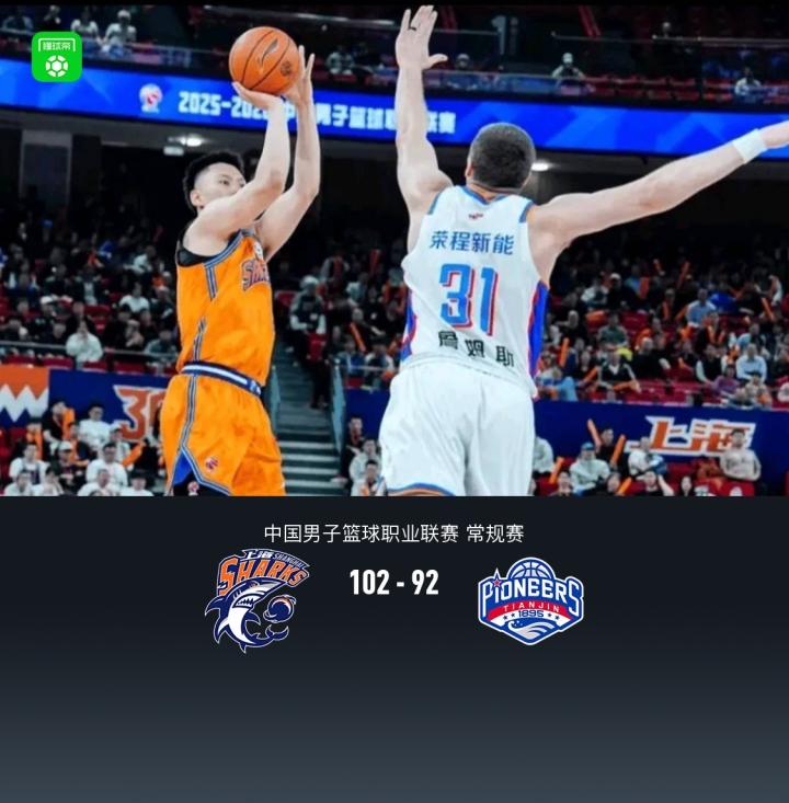 第四节,开节天津郑昊燃、林庭谦、谷泽浴相继得分,上海古德温、王哲林、李弘权回应继续保持两位数领先,后半节上来上海张镇麟、李弘权得分领先至16分,比赛收尾段,天津郑昊燃、田雨持续三分命中一度追至8分,但时间所剩无几,最终上海102-92战胜天津。