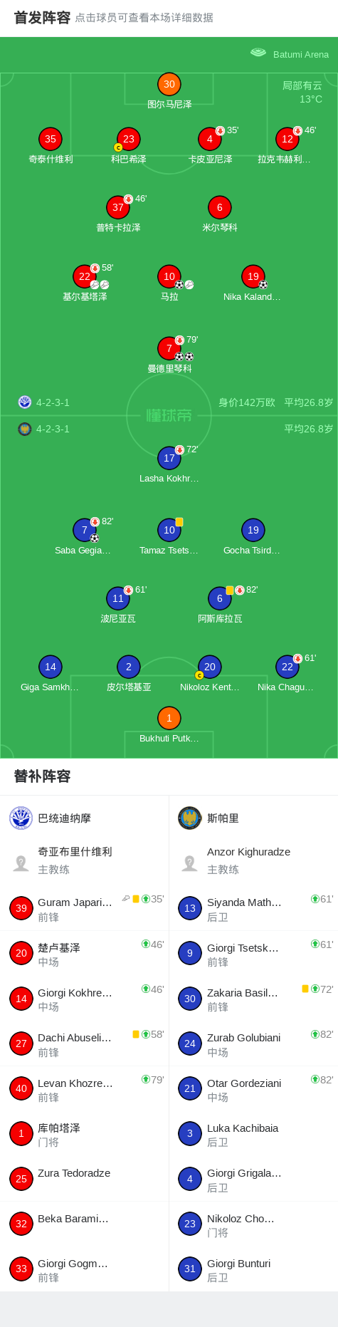 第10分钟,巴统迪纳摩球员基尔基塔泽助攻曼德里琴科打入一球。