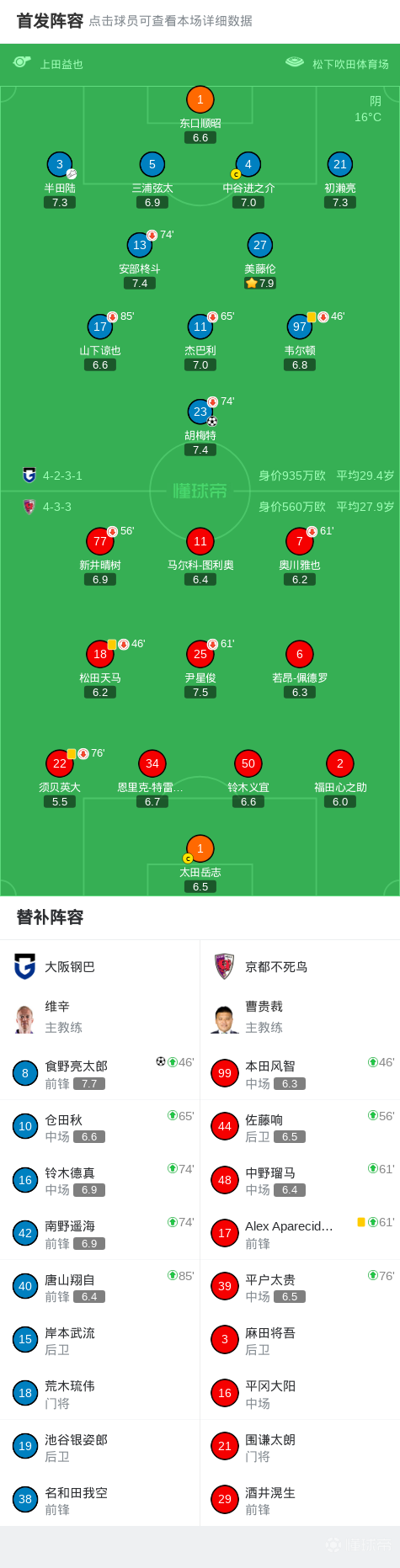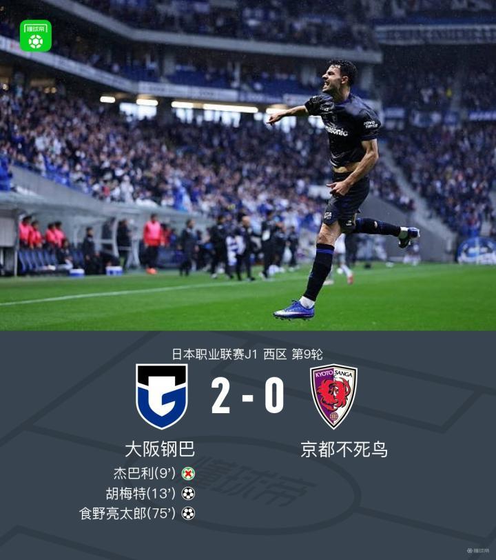 北京时间4月4日日本职业联赛J1 西区第9轮,大阪钢巴主场对阵京都不死鸟。大阪钢巴胡梅特破门,食野亮太郎破门。最终比分大阪钢巴 2-0 京都不死鸟。