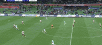 第23分钟,库恩接马库斯-尤尼斯的传球低射近角破门,墨尔本城1-0