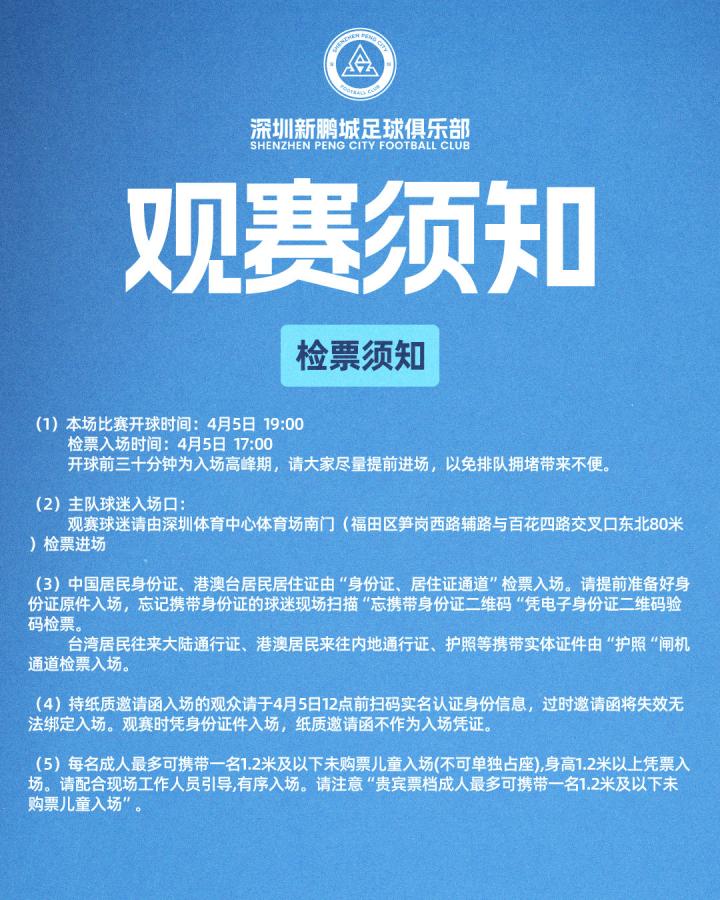 深圳新鹏城4.5日19:00主场观赛须知一键解锁...深圳新鹏城足球俱乐部 @懂球帝04-04 18:46深圳新鹏城4.5日19:00主场观赛须知 一键解锁深圳市体育中心体育场观赛全攻略! 明天见!展开更多