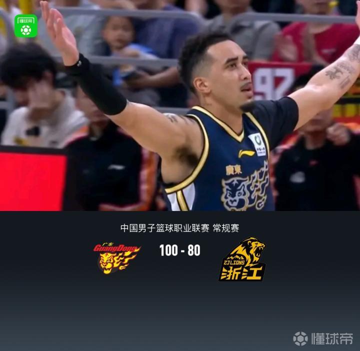 广东100-80大胜广厦,奎因25+8+7,崔永熙11分,胡金秋5+7