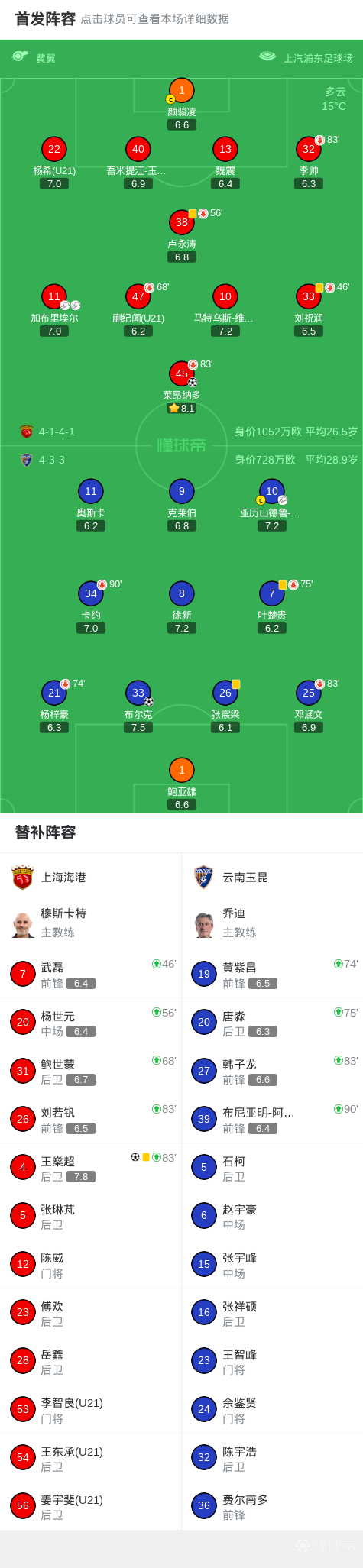 第55分钟,卢永涛伤退,杨世元替补登场