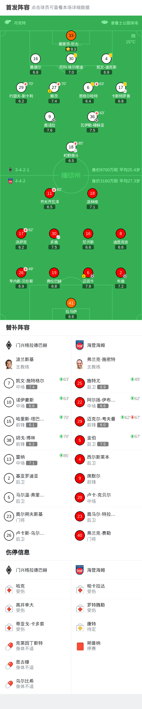 门兴格拉德巴赫2-2海登海姆,瓦伊勒-穆赫亚打破僵局,奥诺拉扳平