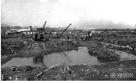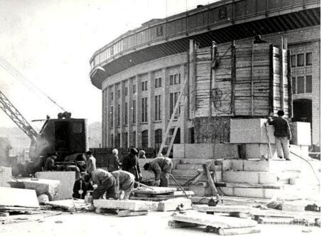 (图)卢日尼基体育场的建设前和建设中
