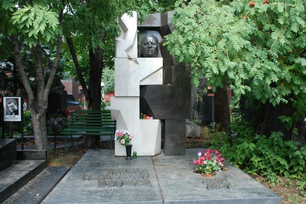 这里几乎每块墓碑都是雕塑艺术品。这些墓碑向世人讲述着墓主人们跌宕起伏的生命故事,也展现出俄罗斯不同时期的历史风貌。笔者对赫鲁晓夫和米高扬的墓碑印象比较深刻,其中赫鲁晓夫的墓碑由黑白两色的花岗石组合而成,他的头像就夹在黑白几何体的中间。墓碑用黑白两色的几何图形非常有力的表现出赫鲁晓夫的鲜明个性,也充分体现了他毁誉参半的政治评价。而米高扬的墓碑设计就充分体现出他最得意的米格战斗机元素,用飞机掠过天空的弧线勾勒出这位飞机设计师的辉煌一生。