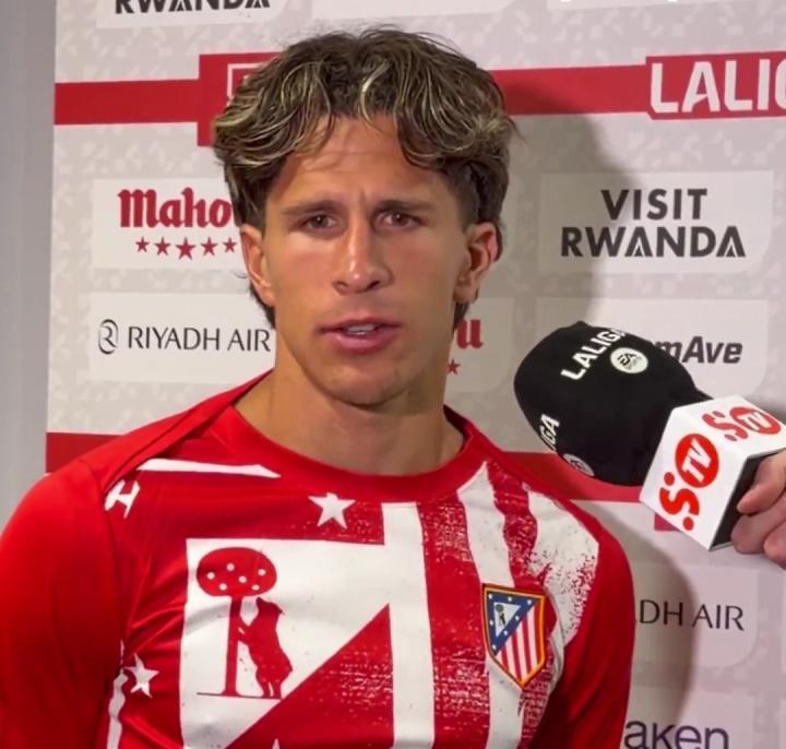 主场被巴萨2-1绝杀后,马竞中场朱利亚诺-西蒙尼在混合区接受了采访,此役他为马竞首开记录。