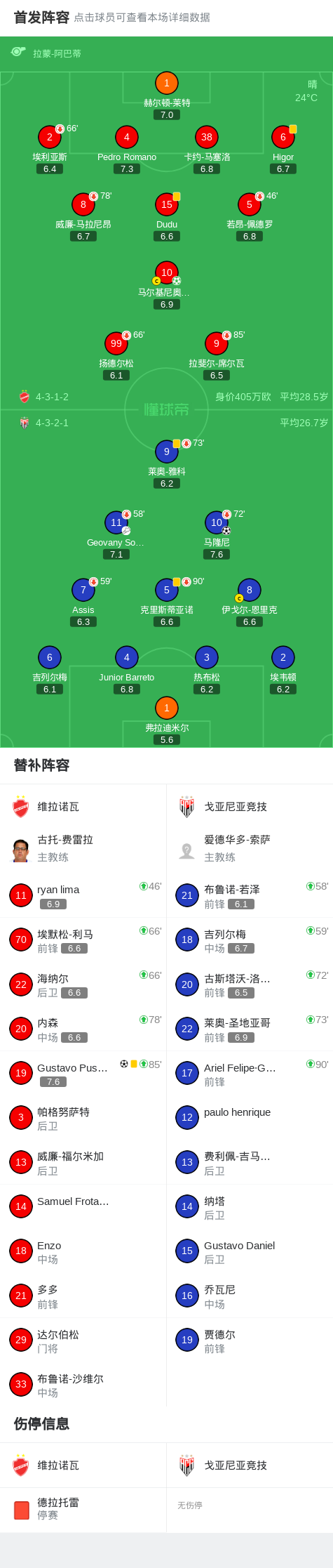 维拉诺瓦2-1逆转戈亚尼亚竞技,Gustavo Puskas Pinheiro Lemos、马尔基尼奥斯-加布里埃尔点射
