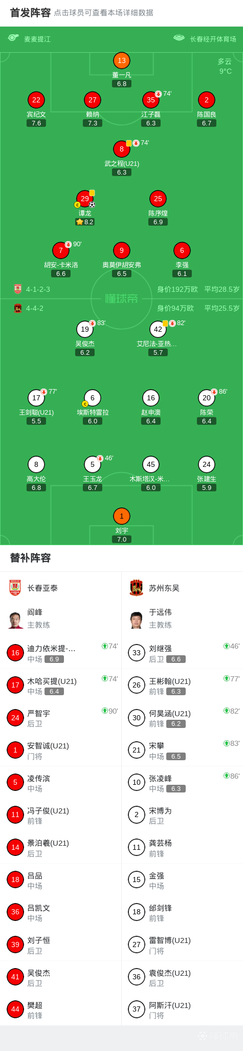 长春亚泰1-0苏州东吴,谭龙制胜球,卡米洛进球被吹+中框