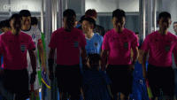 第10分钟,刘奕鸣失去平衡后撞倒姜至鹏,后者接受治疗
