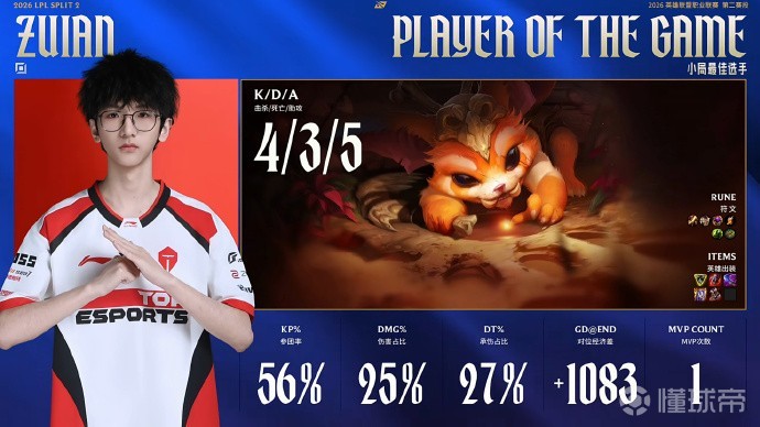 本局MVP给到打出打野Gap的Tian!