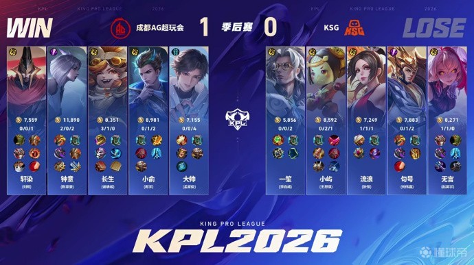 KSG 4-2战胜成都AG超玩会晋级2026年KPL春季赛决赛,将战狼队