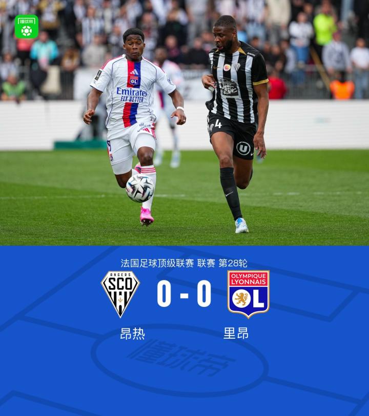 里昂客场0-0昂热遭各项赛事9场不胜,托利索远射造险