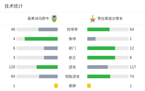 第47分钟,基希讷乌野牛球员科兹洛夫斯基打入一球。