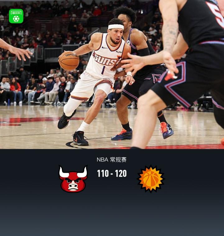 第四节公牛特雷-琼斯拿下7分,太阳狄龙-布鲁克斯拿下11分,最终公牛110-120不敌太阳