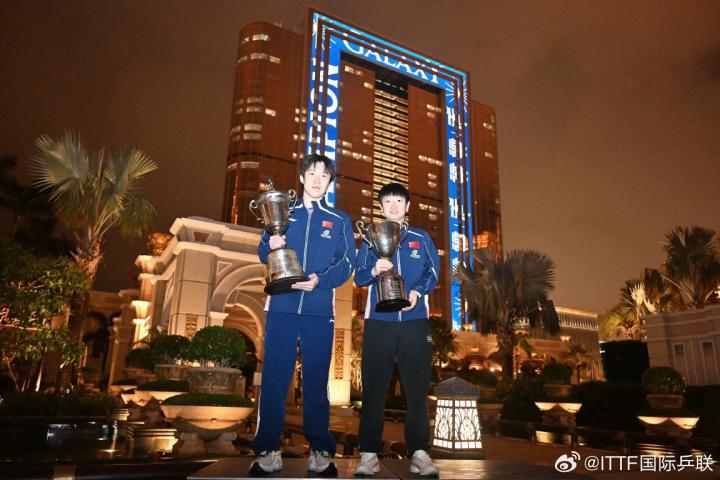 国际乒联官方社媒写道:“冠军王楚钦、孙颖莎夺冠后,前往中国澳门市政署大楼和“天浪淘园”内的澳门悦榕庄、悦涛廊拍摄冠军城市宣传照。再次恭喜王楚钦和孙颖莎🎉 ”