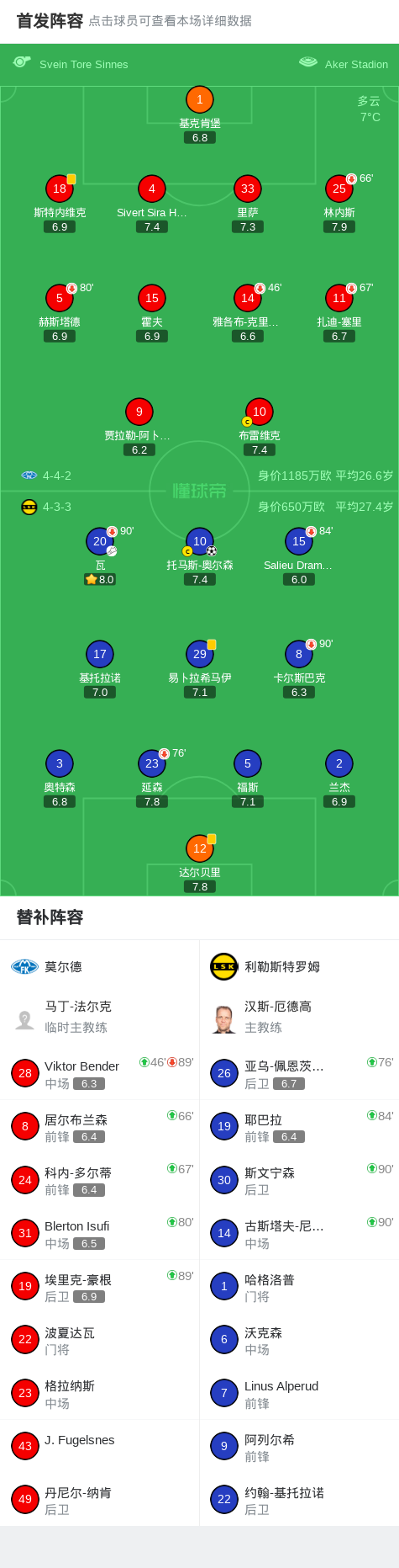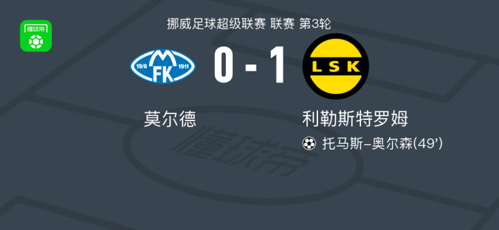 北京时间4月6日挪威足球超级联赛 联赛 第3轮,莫尔德主场对阵利勒斯特罗姆。利勒斯特罗姆托马斯-奥尔森破门。最终比分莫尔德 0-1 利勒斯特罗姆。