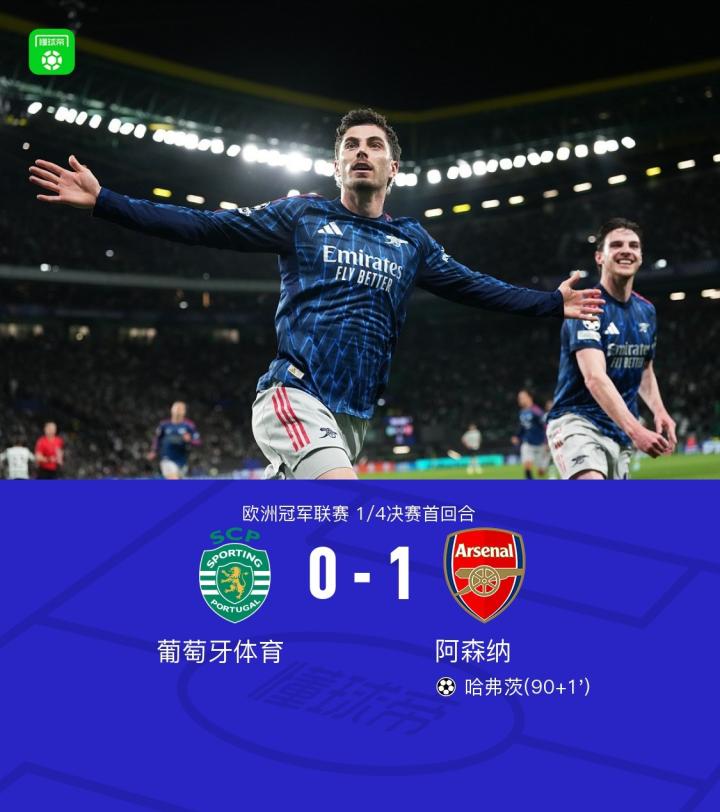 阿森纳客场1-0葡萄牙体育,哈弗茨绝杀,苏比门迪进球被吹