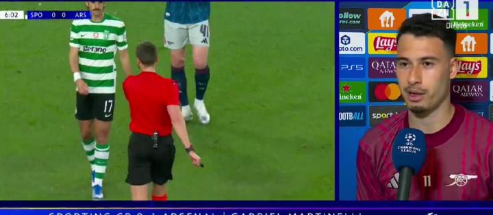 在客场1-0战胜葡萄牙体育的赛后,本场比赛贡献一次助攻的阿森纳前锋马丁内利接受了DAZN葡萄牙站的采访。