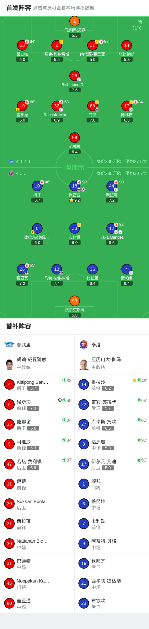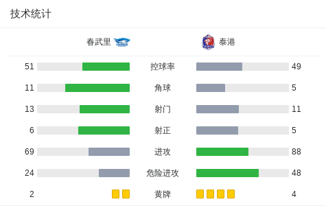 下半场补时第10分钟,春武里球员Richmond Darko助攻裕沙功打入一球。