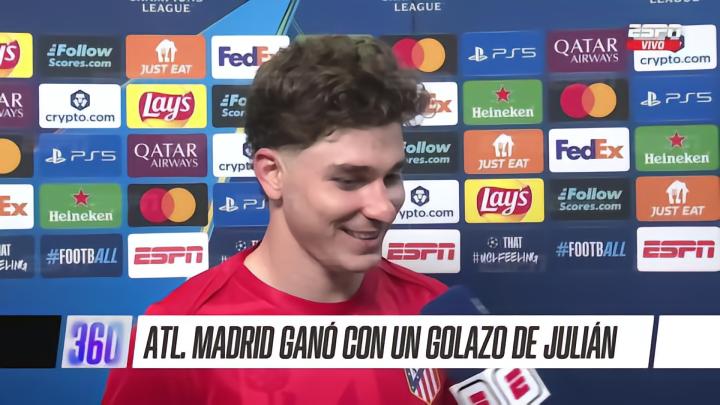 帮助球队在欧冠1/4决赛中客场2-0击败巴萨后,马竞前锋阿尔瓦雷斯接受了Movistar+的采访,此役他通过任意球为球队打破僵局。