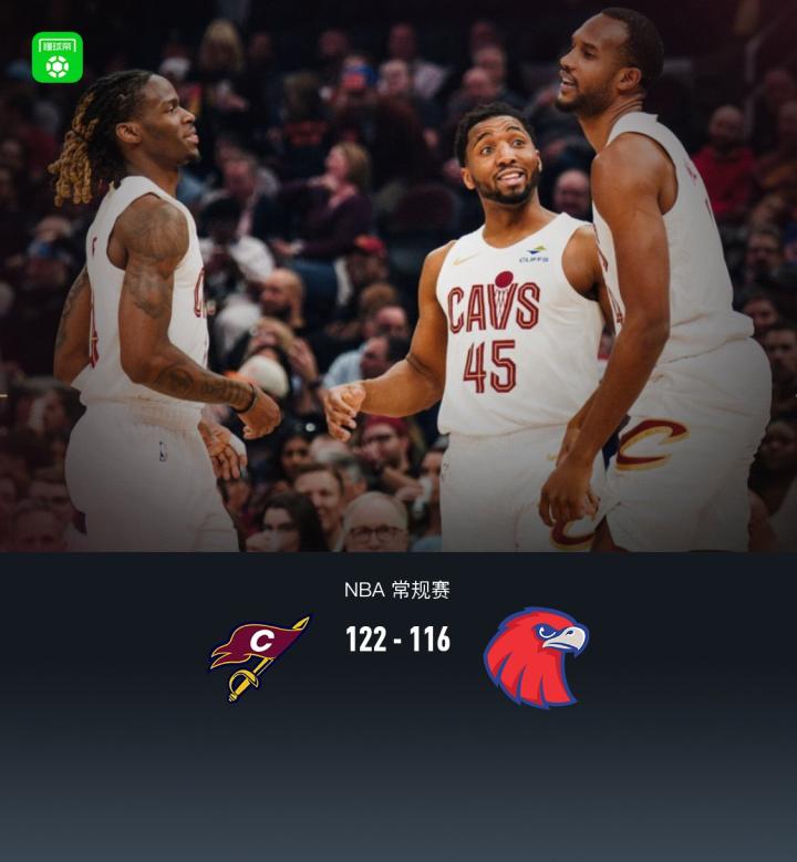 第四节骑士哈登拿下5分,老鹰亚历山大-沃克拿下10分,最终骑士122-116战胜老鹰